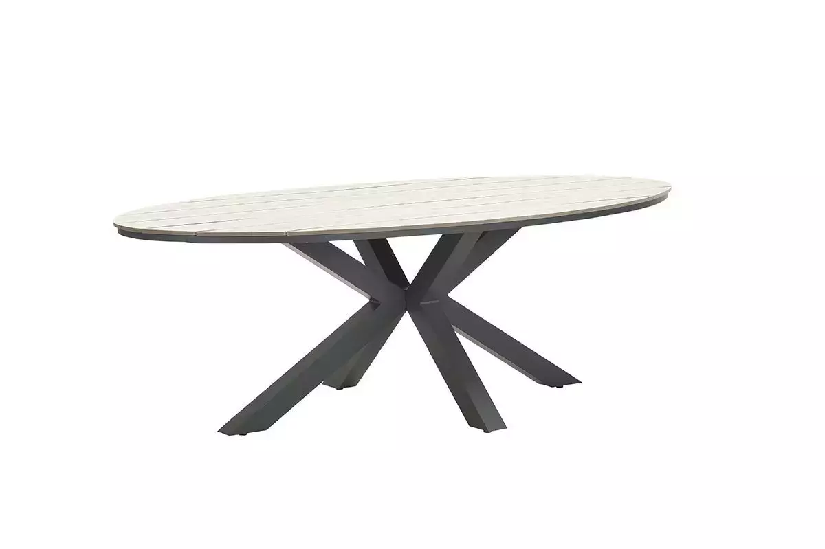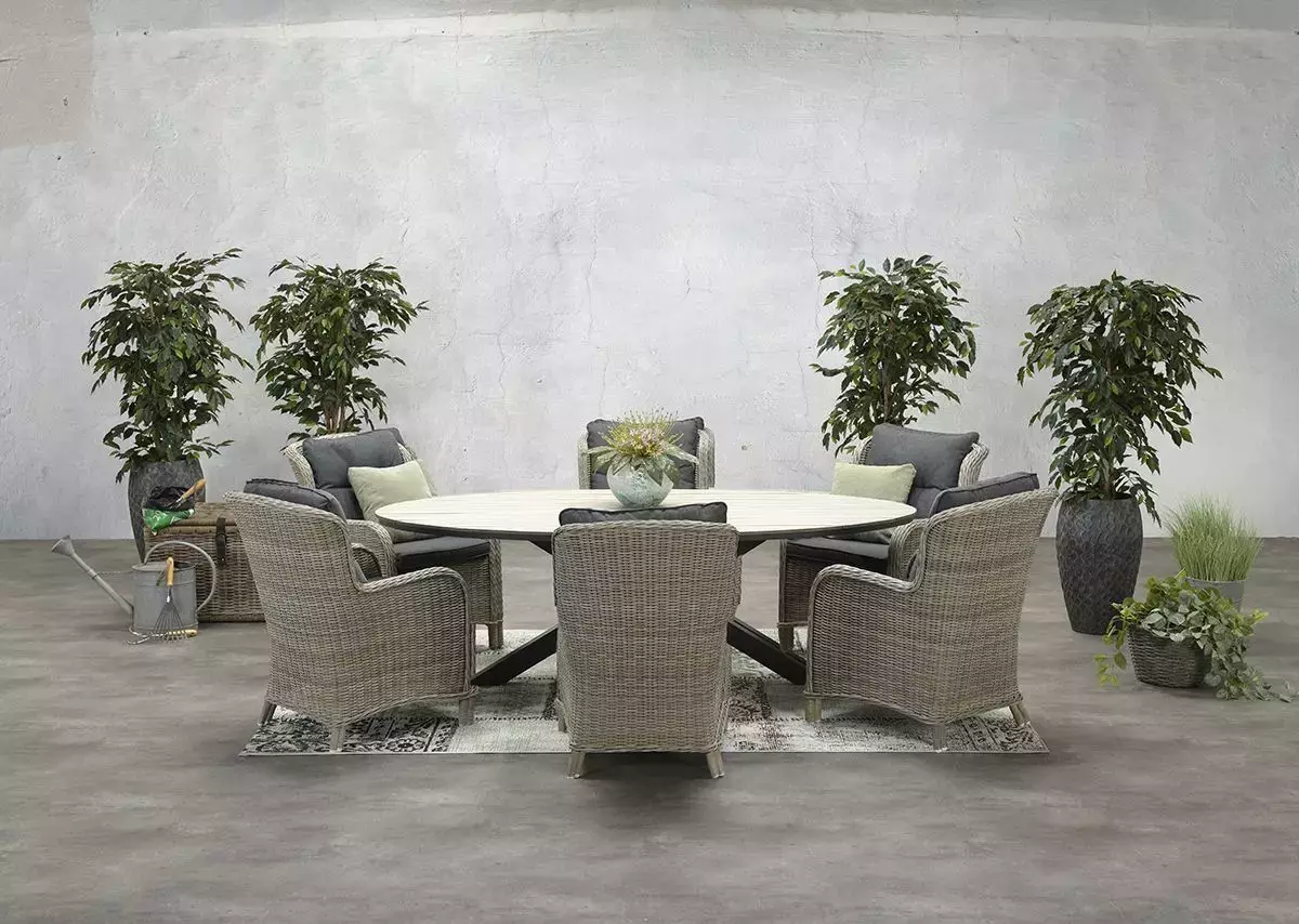 De ovale vorm van de Edison tafel geeft een gracieuze uitstraling en dit zorgt ervoor dat de Edison tafel eindeloos te combineren is met verschillende stoelen uit het Garden Impressions assortiment.